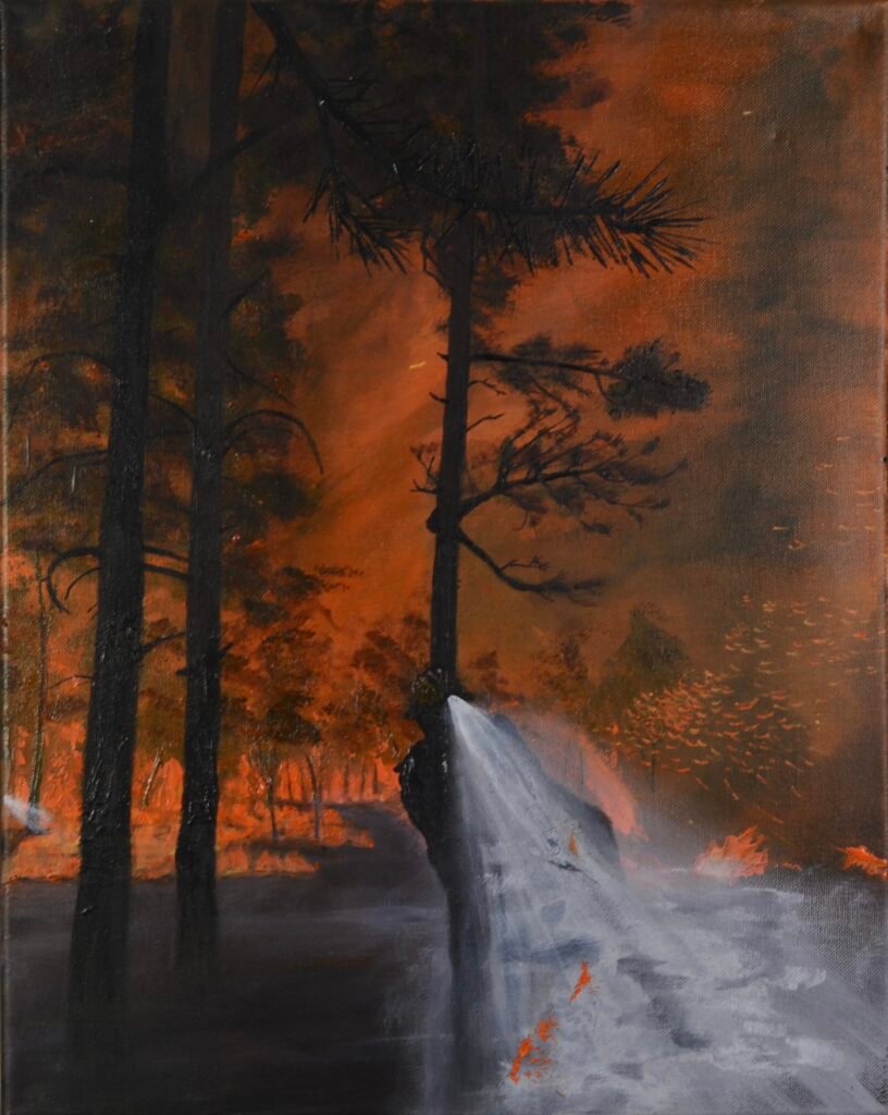 There have been countless hours of working into, through or during the night for all of us in fire. That’s why this piece is called Night Line. That’s what it is, cutting line at night.